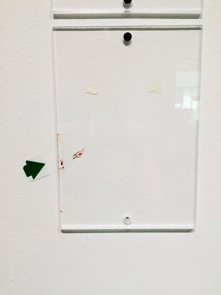 On Friday 14th June 2018 the Citizen exhibition at Swiss Cottage Library was vandalised and 15 of my Polaroids were stolen. The perpetrator removed the bottom screws from the perspex coverings (taking the screws with them) and slid the Polaroids out leaving a trail of blood behind them. The pictures appeared to be randomly selected and only 9 remained. We never found out why, but the show continued to its advertised end with the statement (below) pinned to the wall.