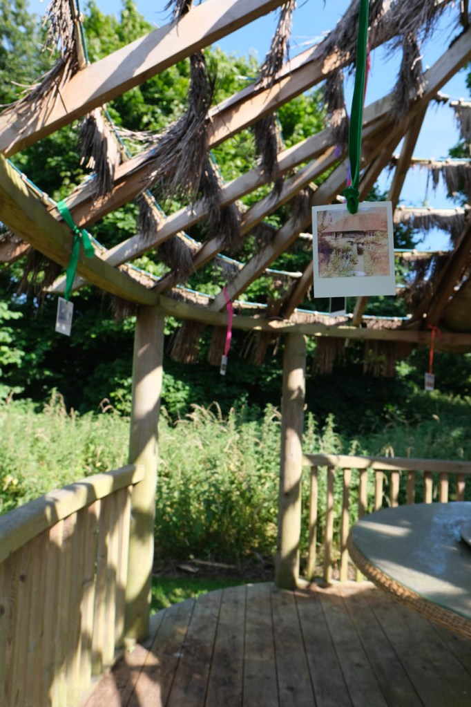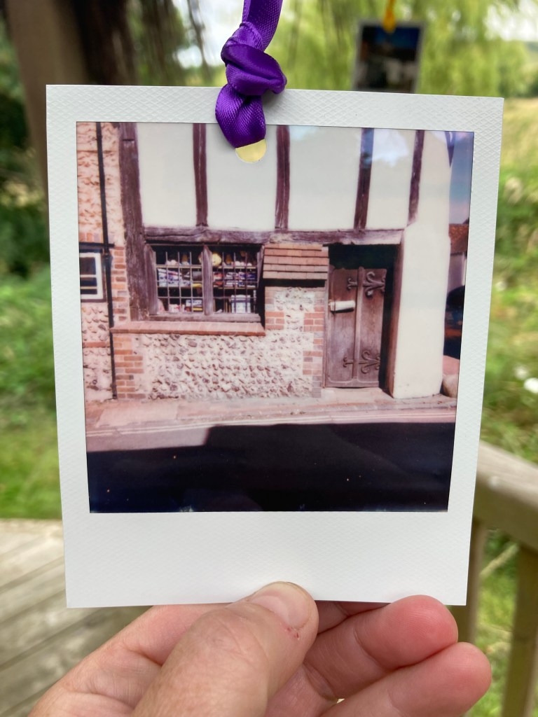 The shade can be a beautiful place to hang out when the light’s too strong was an installation I made in 2022 for Zero Gravity – A Landing at The Occasionnale in East Sussex. Set in a summer house, its central focus was an apple tree, a variety local to the area, which was installed with a surrounding ring of slip-tied Polaroids fluttering on the ends of velvet ribbons. Each image held a memory of my stepfather, who died the year before in the next village, and I carved his favourite phrase into the tree bark – a wound, like grief, that the tree will continue to grow around. I wanted the work to evoke a Clootie Tree and the Pagan practice of tying rags dipped in holy water to trees so as to heal ailments – and hopefully my grief.